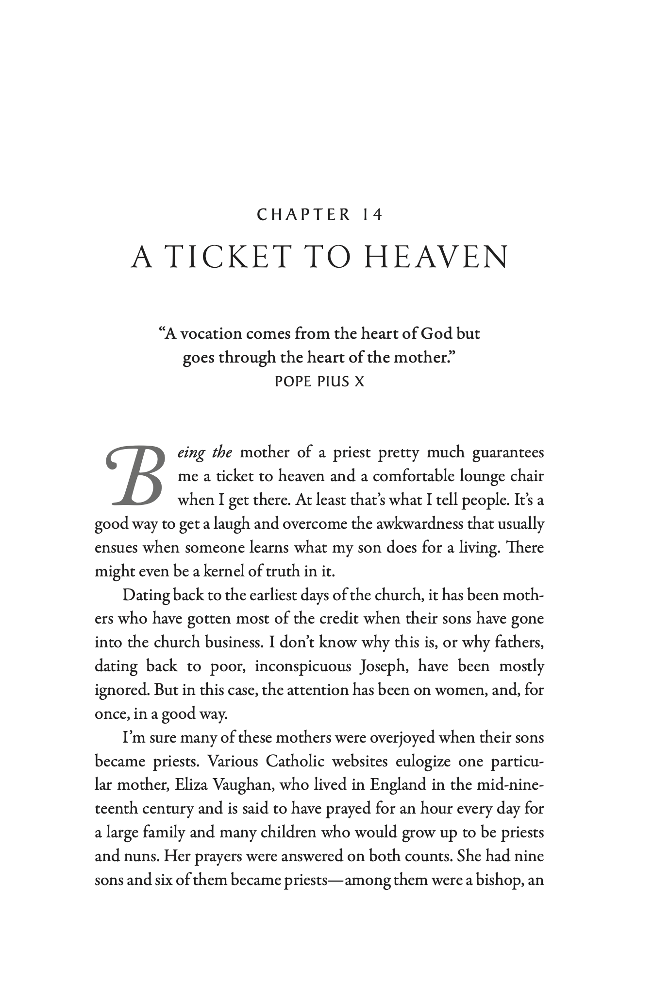 “A masterfully told tale about a mother and her son, a readable, relatable book that asks and answers challenging questions about family and spiritual growth. This is not only a story for Christian readers, although they will find special meaning in the compelling exploration of the Jesuit lifestyle and of the rich and often troubled history of Catholicism. It is not just a book for mothers and sons, although the author explores the nature of that relationship with the keen and revealing eye and clear voice of a journalist. It is a book for all who wrestle with questions of faith, who wonder about our paths as we watch our children choose their own.” —Mark Hass, author of The Days Before Tomorrow; Arizona State University professor